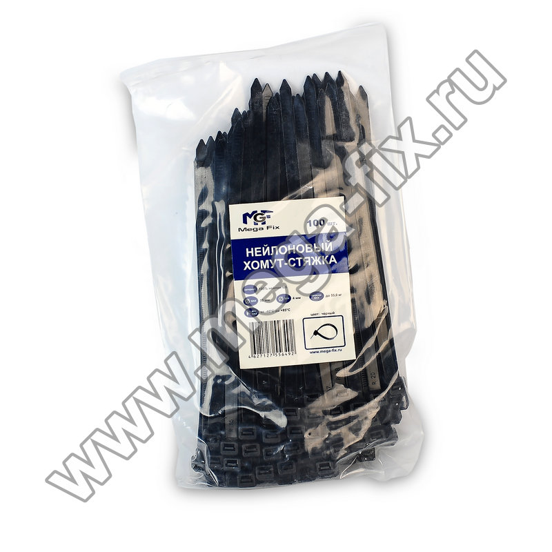 Хомут нейлоновый MGF 4,6х500 мм черного цвета (100 шт./ уп.)